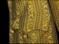 Eine prächtige Rokokoweste erfordert einen edlen Stoff, wie etwa ornamentalen Damast oder bestickte Seide. Für eine optimale Anpassung zum Justeaucorps empfehle ich persönliche Kontakt-aufnahme.